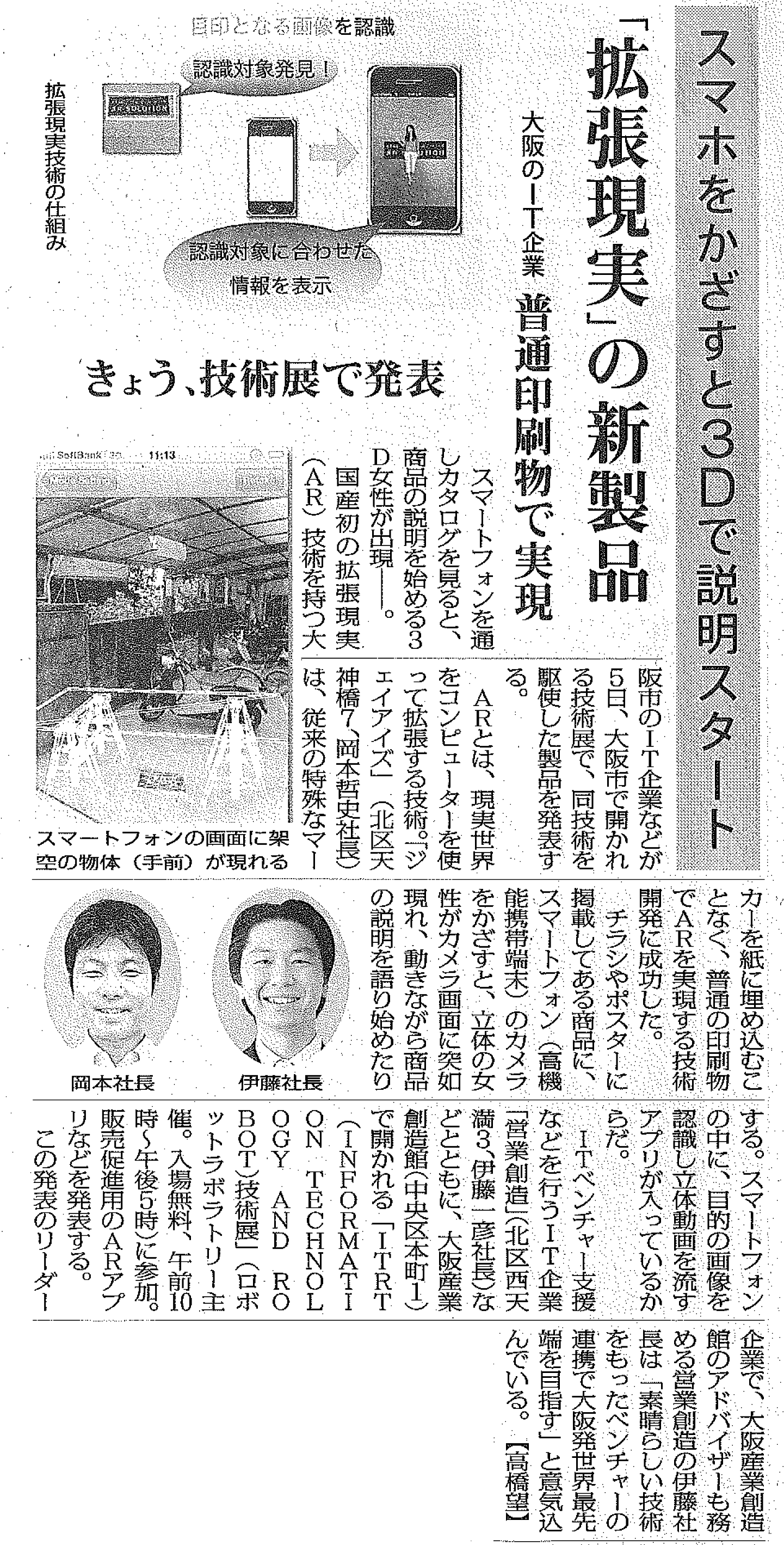 毎日新聞平成23年8月5日の23面で、弊社のARについての記事が掲載されました。